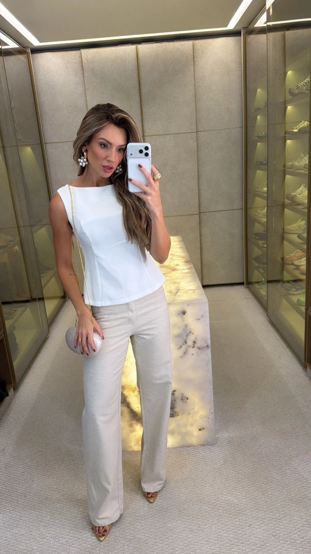Blusa em tecido crepe alfaiataria